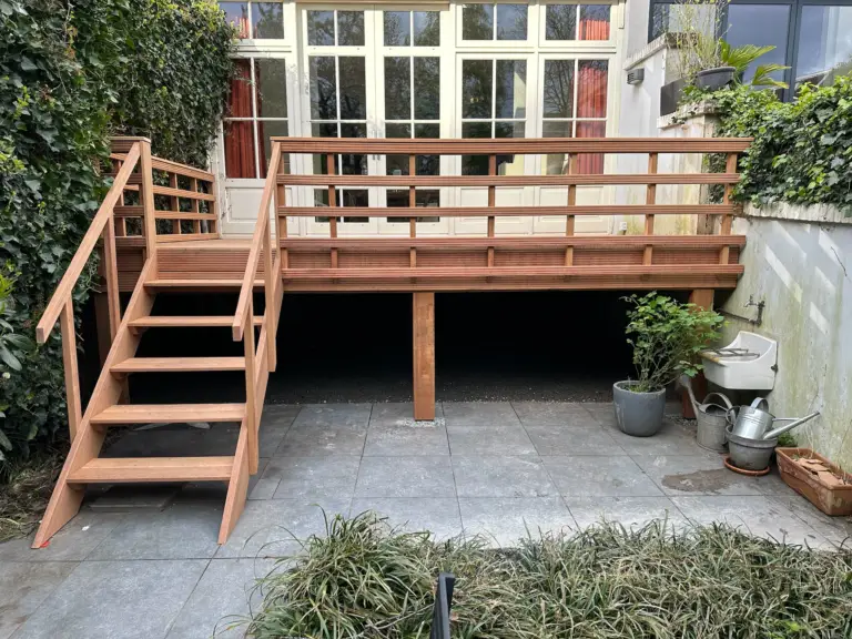 Bij Smale Bouw hebben we een oude, verrotte vlonder in Deventer gerenoveerd en verlengd, waardoor een ruimere en aantrekkelijkere buitenruimte is ontstaan. Het project omvatte de volledige vernieuwing van de vlonder met duurzame materialen, verlenging voor extra ruimte, isolatie van de onderzijde van de woning, en esthetische verbeteringen zoals grind onder de vlonder. De trap en vlonder zijn ter plaatse op maat gemaakt met traditionele timmertechnieken en moderne materialen. Dit project heeft zowel de functionele als esthetische aspecten van de buitenruimte aanzienlijk verbeterd.
